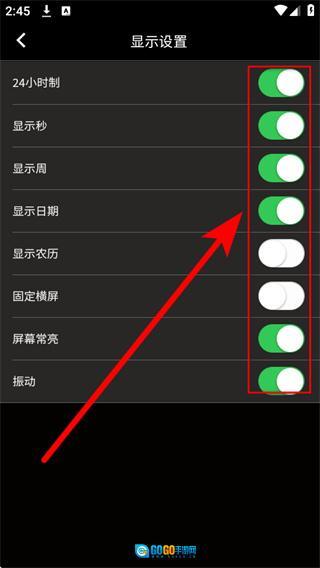 4、进入显示设置界面后,你可以依据自身需求开启或关闭各项显示功能,将时钟显示效果调整至符合自己偏好的状态。