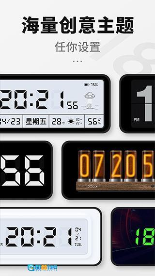 4、支持高度个性化的视觉定制,海量主题库可自定义颜色、字体与背景,搭配高品质白噪音助力专注状态,有效解决时钟样式固定、难以适配个人审美与使用场景的问题,打造专属于你的时间界面。