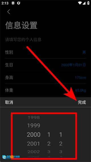 3、进入信息设置页面后,在弹出的日期选择器中选定对应的日期。