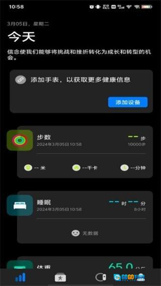 采用清爽的深色界面设计,视觉观感舒适又护眼,功能分区清晰直观,操作逻辑简洁流畅,没有冗余弹窗的干扰,让你沉浸式享受便捷的运动管理体验。