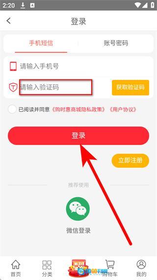 4、把收到的短信验证码填入验证码栏,勾选协议后,点击登录完成登录。