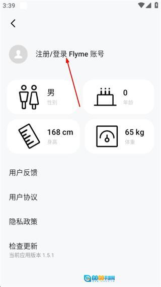在个人信息页面,点击“注册登录Flyme账号”区域,即可进入账号登录页面。