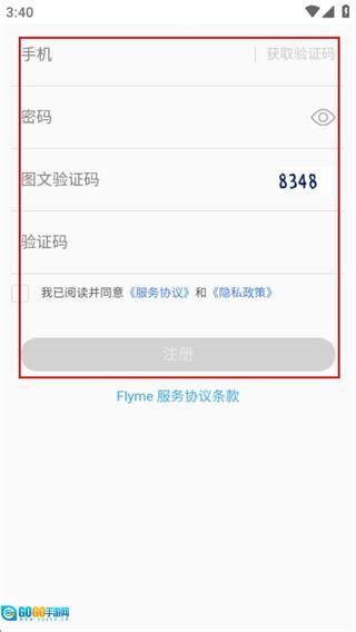 在登录页面点击注册选项,即可进入Flyme账号的注册页面。