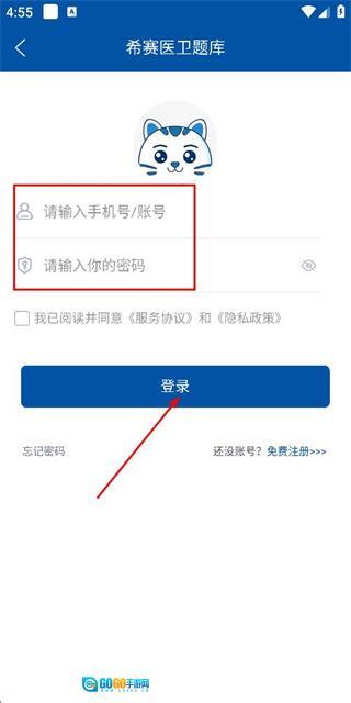 3、在登录页面填写手机号和密码,勾选协议后,点击登录完成账号登录操作