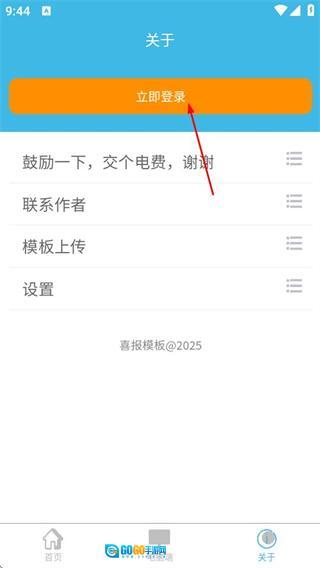 2、在关于页面,点击立即登录按钮,即可进入用户登录页面。