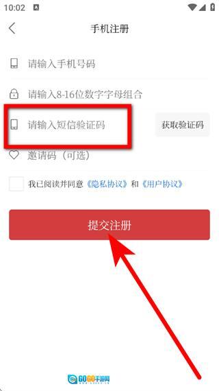 4、填写短信验证码,勾选相关选项后,点击“提交注册”按钮,即可完成账号注册流程。
