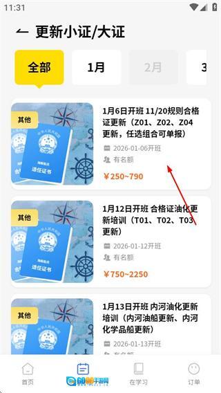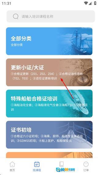 2、在课程分类页面,点击“更新小证大证”板块,即可进入对应的课程列表页面。