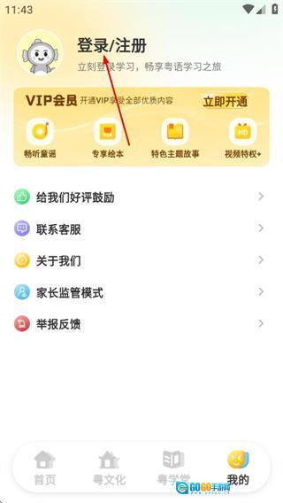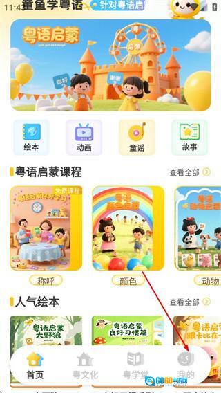 1、进入宝宝学粤语后,点击底部的我的选项,可进入个人中心页面。
