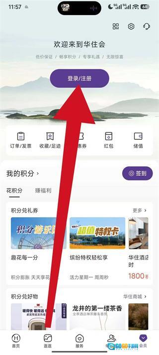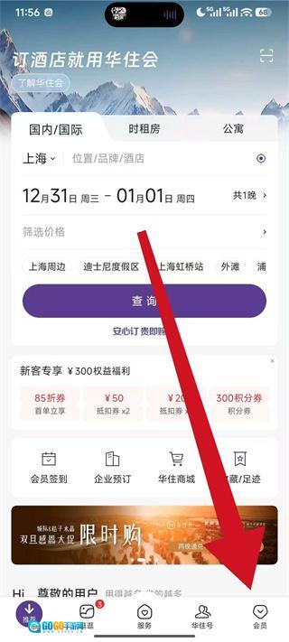 1、启动华住会应用,点击底部导航栏中的“会员”按钮,进入会员中心界面。