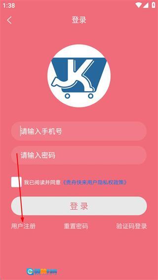 3、在登录页面,点击用户注册选项,可进入注册账号页面。