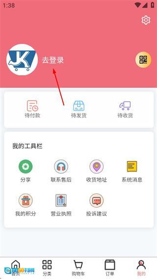 2、在个人中心页面,点击去登录区域,可进入登录页面。
