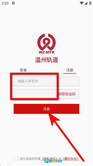 4、进入注册页面后,填写手机号并输入验证码,随后点击注册按钮,即可完成账号注册流程。
