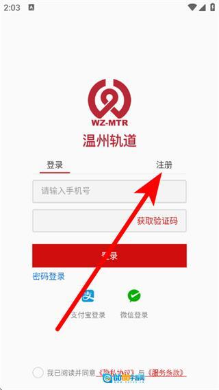 3、在登录页面,点击右上角的注册选项,即可进入注册界面。