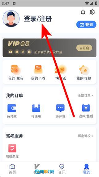 1、打开港城快车道首页后,点击页面底部的“我的”选项,即可进入个人中心页面。
