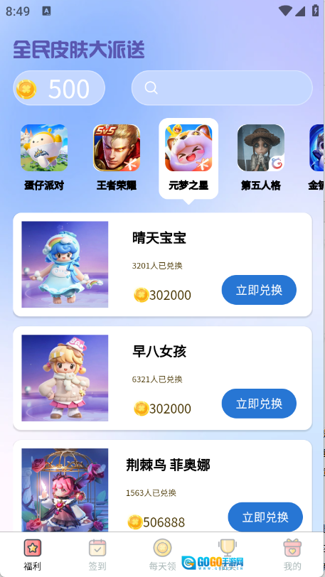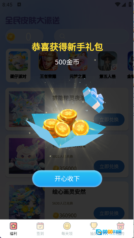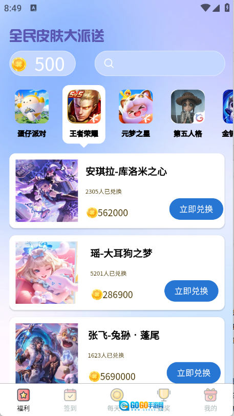 王者荣耀、蛋仔派对、和平精英等各类游戏的皮肤都能免费领取,而且全部是永久有效的,只要完成任务获取对应的金币就能兑换。