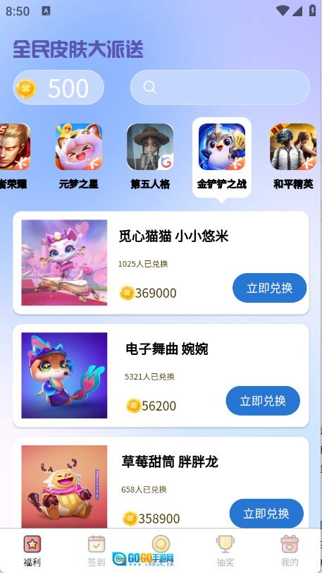 2、丰富多样的游戏皮肤,能够满足不同用户的兑换需求。