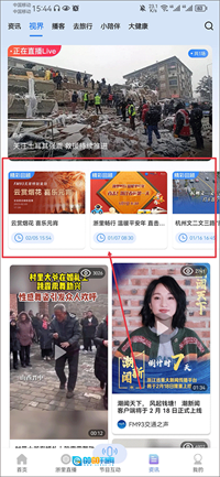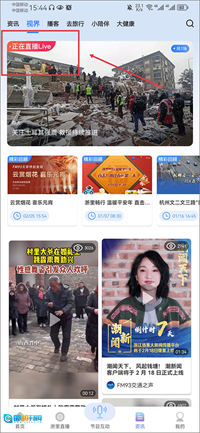 2、进入后点击左上角带有正在直播的视频。