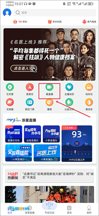 1、在首页中,点击看直播。