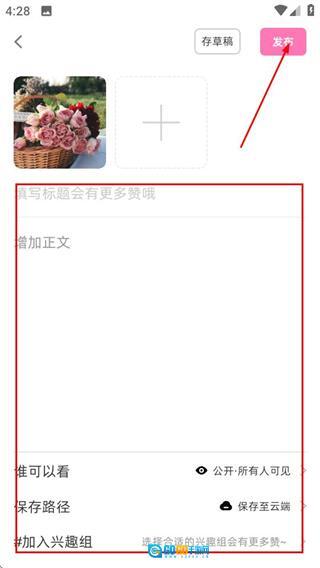 4、进入编辑页面,把内容填写好后点击发布按钮,就能顺利完成笔记的撰写。