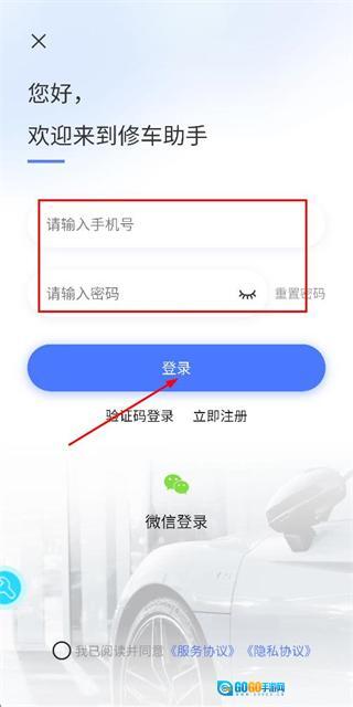 3、在登录页面输入手机号与密码,勾选相关协议后,点击登录按钮即可完成账号登录流程。
