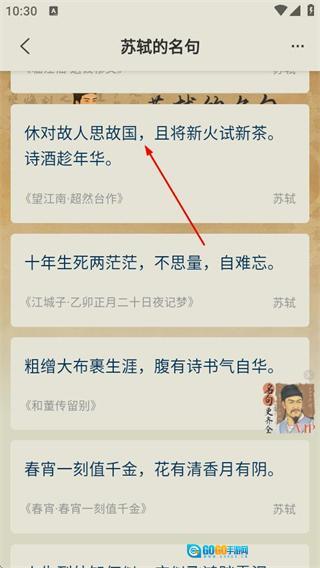 在详情列表页面,点击目标名句,即可进入该名句对应的详情页面。