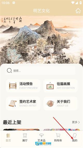 在明艺文化的首页,点击底部的“我的”选项,即可进入个人页面。