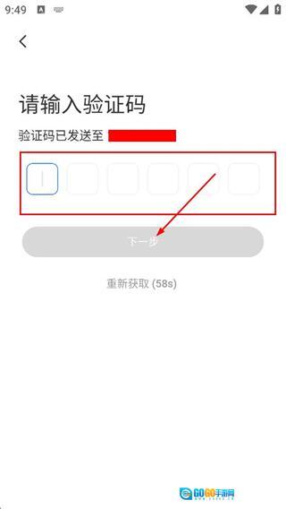 4、在请输入验证码页面,填写收到的验证码,点击下一步按钮,完成注册流程。