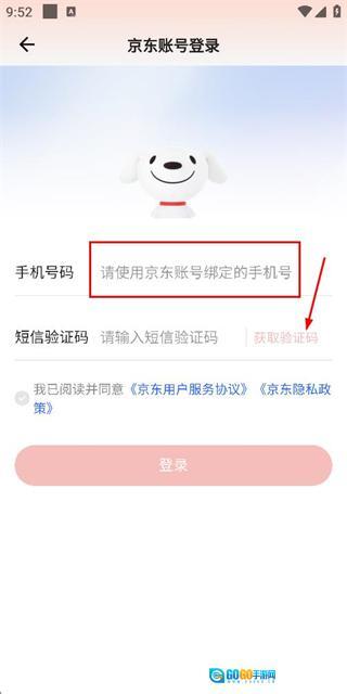 2、在登录页面填写手机号,勾选协议后,点击获取验证码。