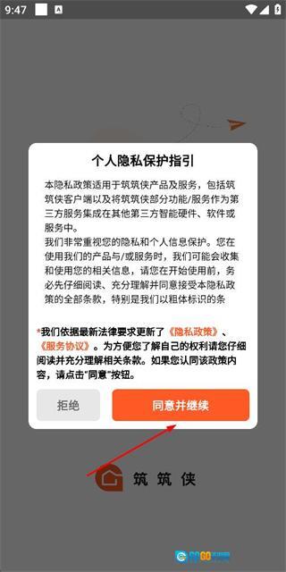 1、在用户协议隐私政策弹窗中点击同意并继续,进入登录页面。