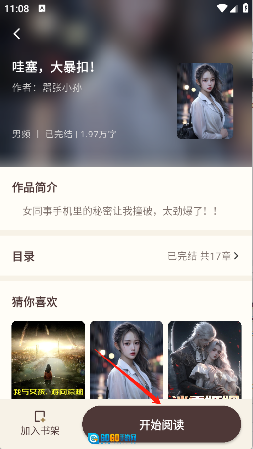 5、用户点开想看的小说之后,点击“开始阅读”。