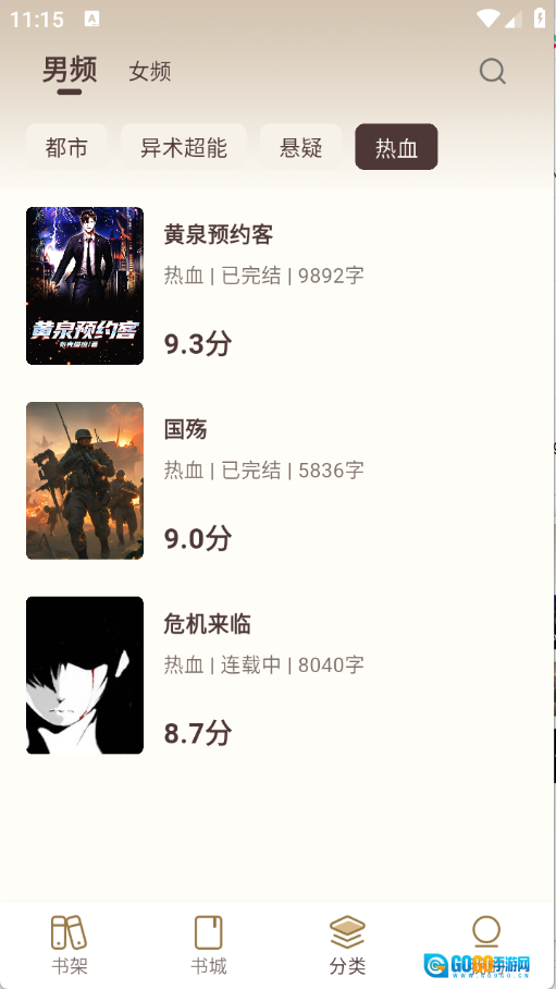 3、分类将小说进行了详细的归类。