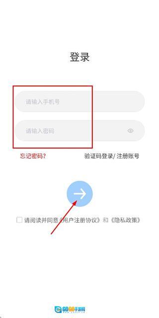 3、在登录页面填写手机号和密码,勾选协议后,点击登录完成账号登录操作。