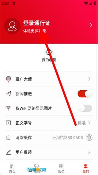 2、在个人页面,点击登录通行证区域,进入登录页面。