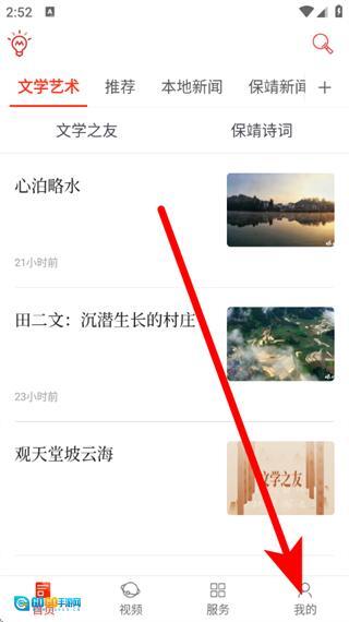 1、在山水保靖首页,点击底部我的选项,进入个人页面。