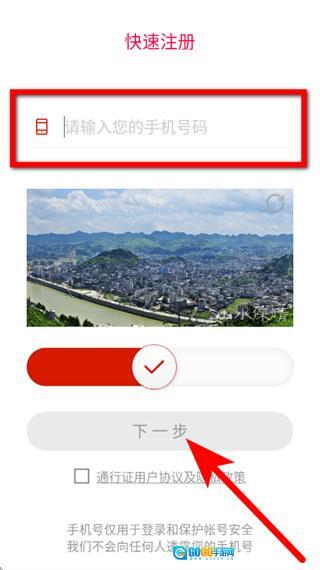 4、在注册页面,输入手机号码,勾选相关协议,点击下一步。