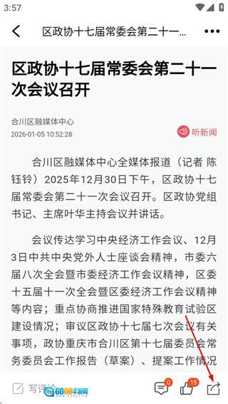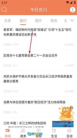 1、进入今日合川后,点击目标新闻条目,可进入该新闻的详情页面。