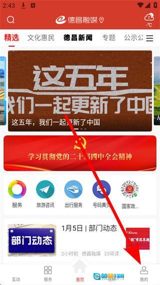 1、打开德昌融媒应用,点击底部导航栏中的“我的”选项,即可进入个人中心页面。