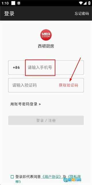 2、在账号注册页面输入手机号码后,点击“获取验证码”按钮。