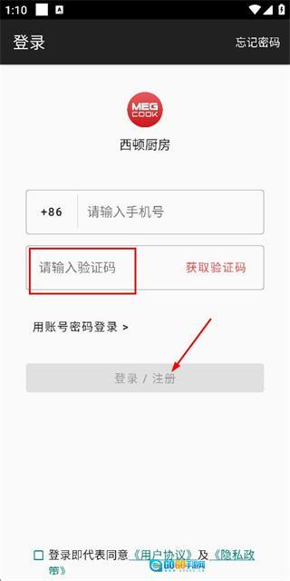 3、在账号注册页面输入验证码,勾选相关协议后点击注册按钮,即可完成注册流程。