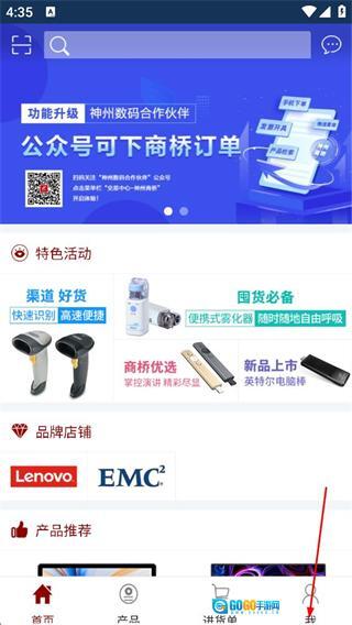 1、在神州商桥首页,点击底部的我选项,进入登录/注册页面。