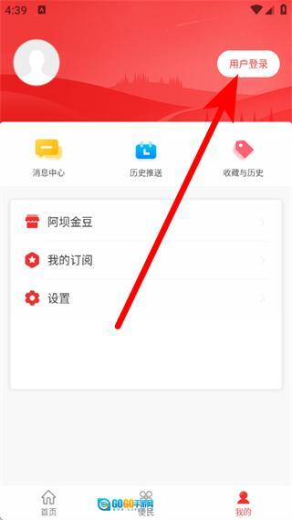 2、在个人页面,点击用户登录区域,进入登录页面。