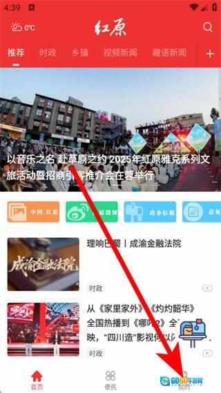 1、在大美红原首页,点击底部我的,进入个人页面。