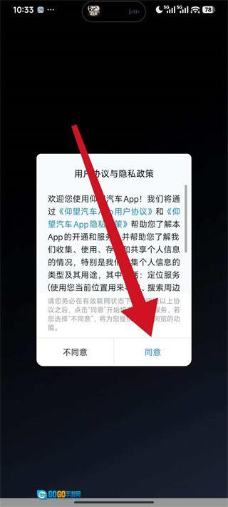 1、打开仰望汽车,弹出弹窗后,点击同意,进入主界面。