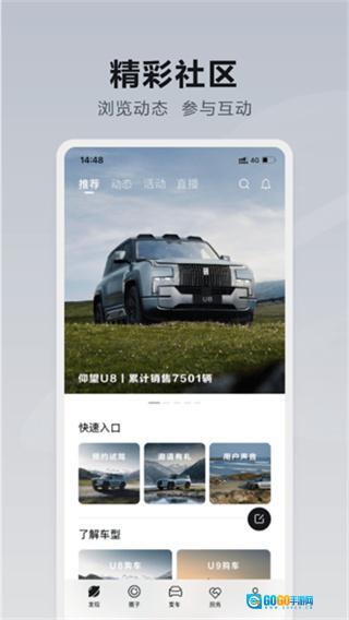 5、高端用户社区生态,提供技术交流、越野路线分享、车主活动报名等功能,促进用户间的商业合作与思想碰撞,将用户需求转化为产品优化方向,实现品牌与用户的共创共建。