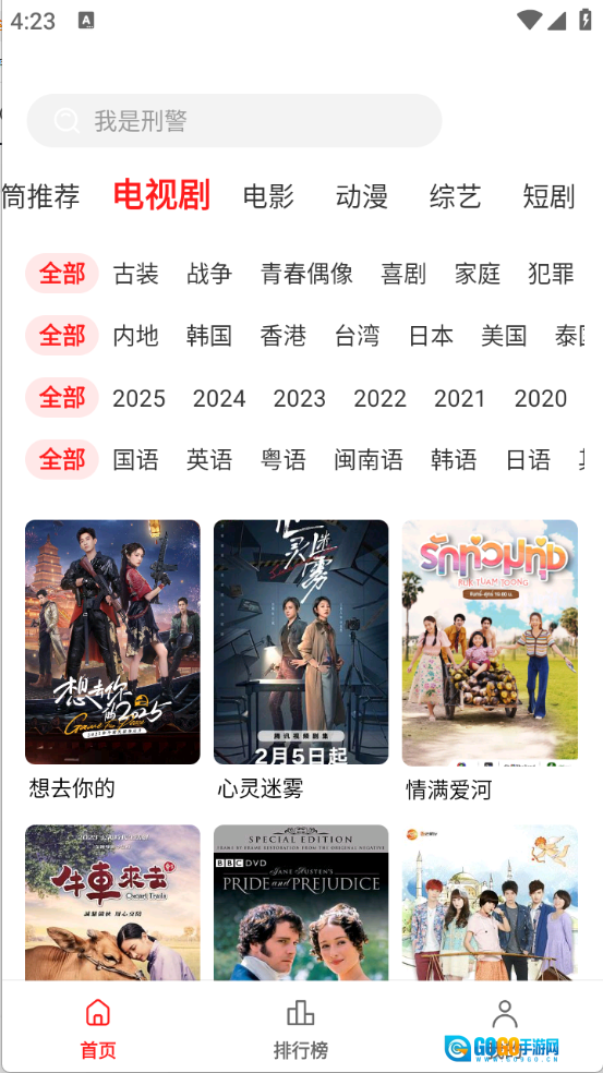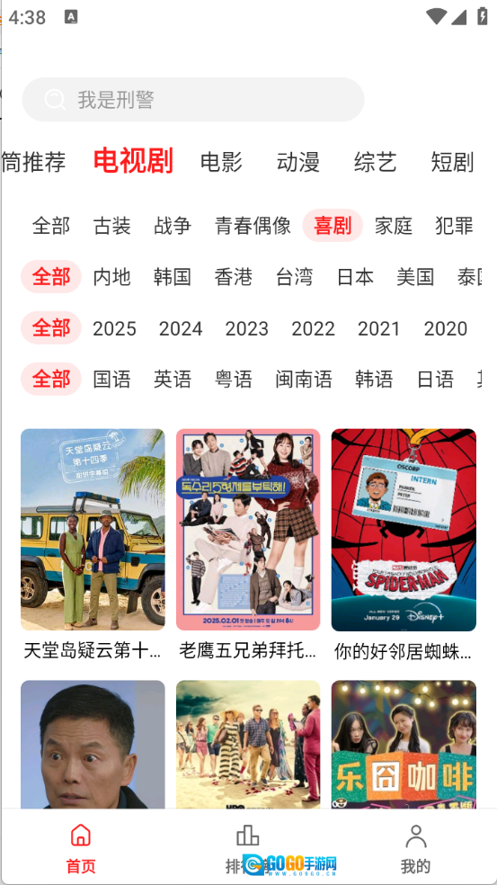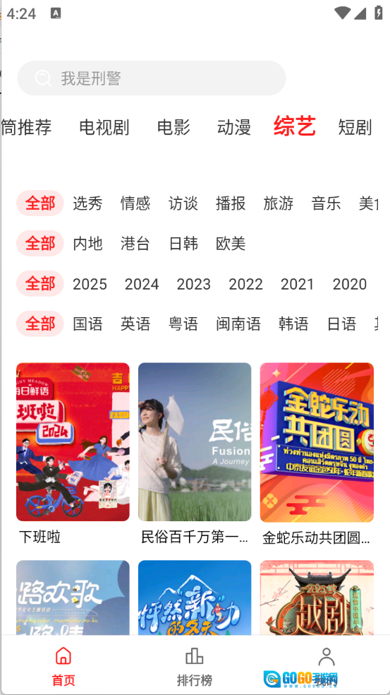 进入首页后,顶部栏里有非常丰富的影视资源,涵盖了电视剧、电影和综艺等类别。