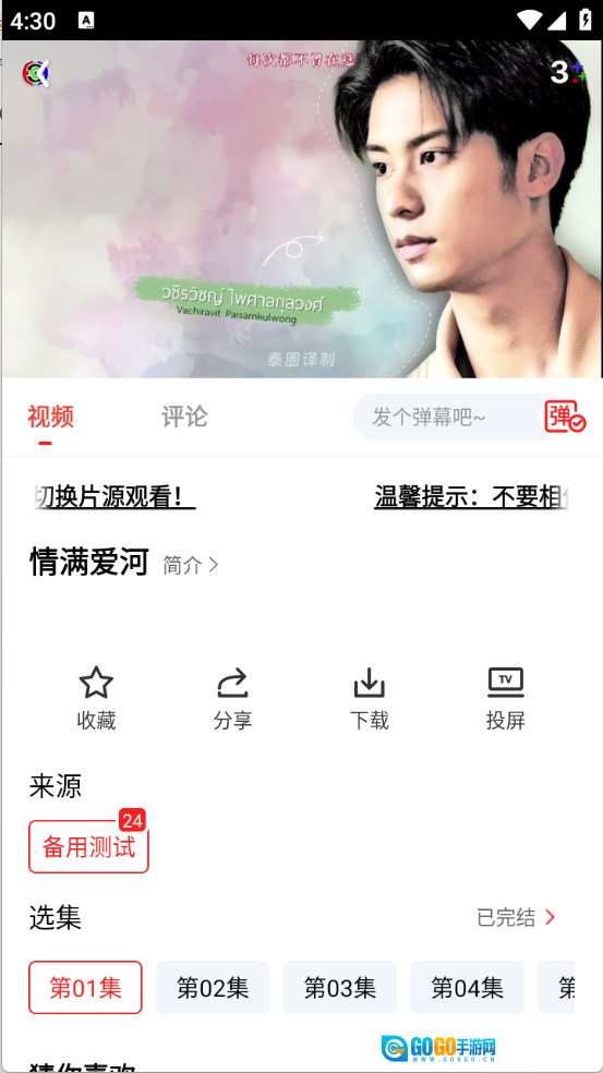 5、打开心仪的影视作品后,用户能够挑选集数、更换播放源,还可以进行投屏等操作。