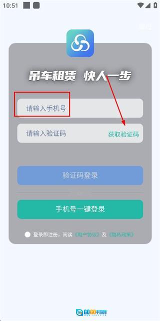 2、在登录页面输入手机号,勾选相关协议后,点击“获取验证码”按钮。