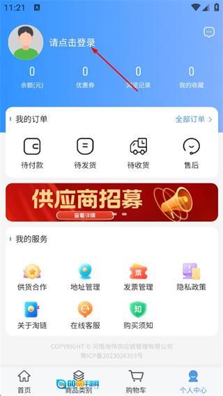 2、在个人中心页面,点击请点击登录区域,进入商城登录页面。