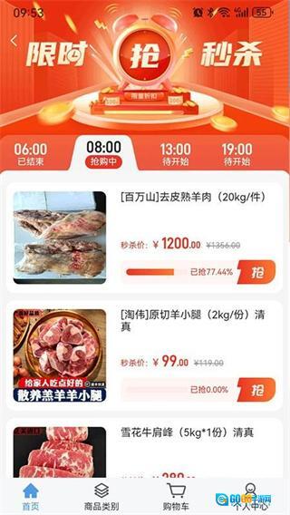 涵盖牛羊猪肉,水产海鲜,面点杂货等多个品类的生鲜商品,在线可轻松找到所需的所有生鲜好物,支持一站式选择下单,无需多处寻找,节省大量采购时间和精力。