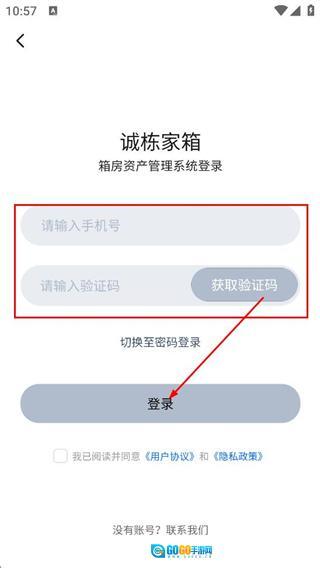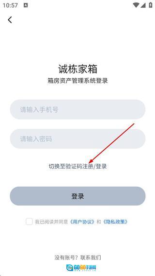2、在登录页面,点击切换至验证码注册/登录选项,切换至验证码登录的操作界面。